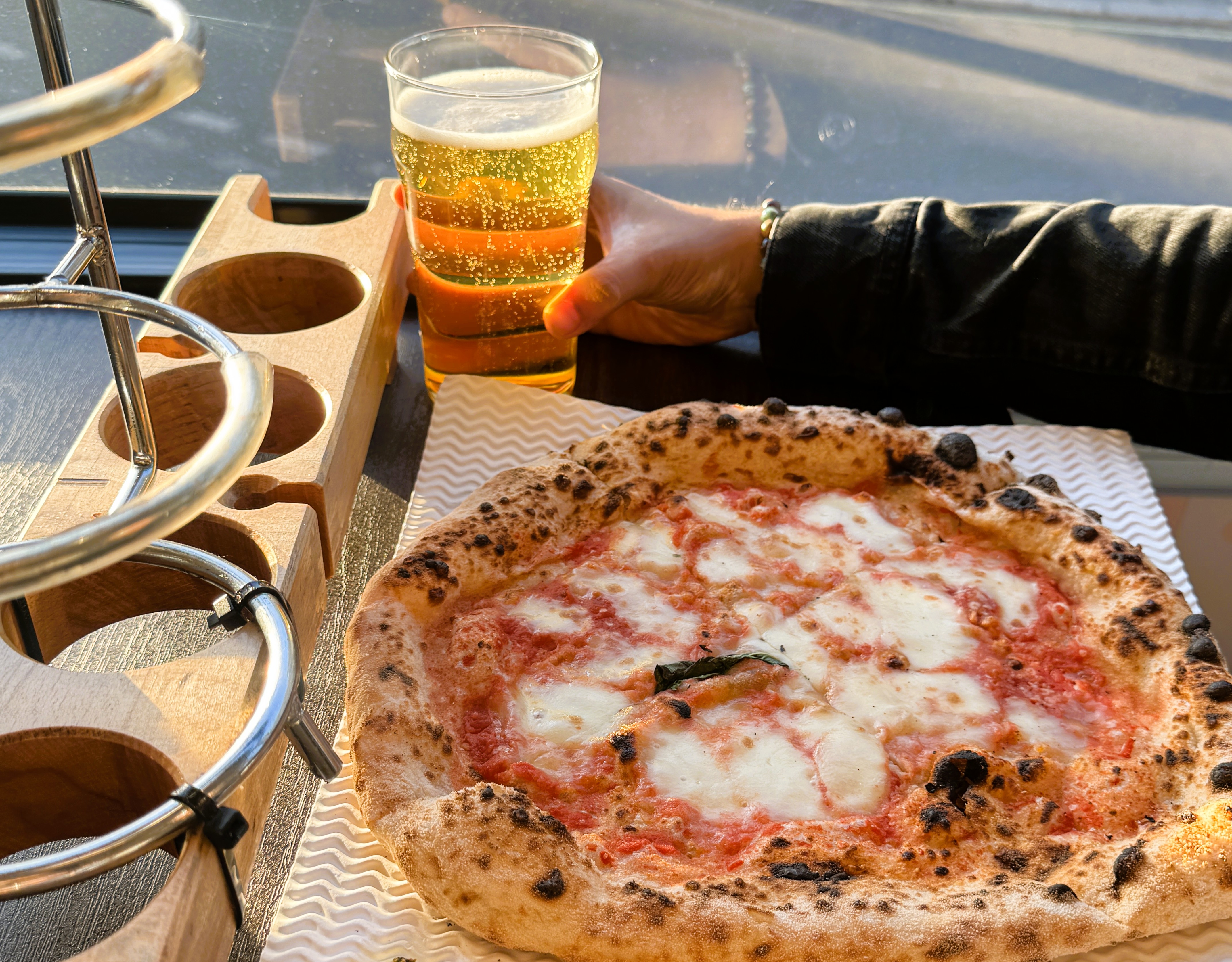Delight in a delicious pizza, two beers, and marinated green olives whilst enjoying stunning views of London. Sing along to old school tunes along the way!